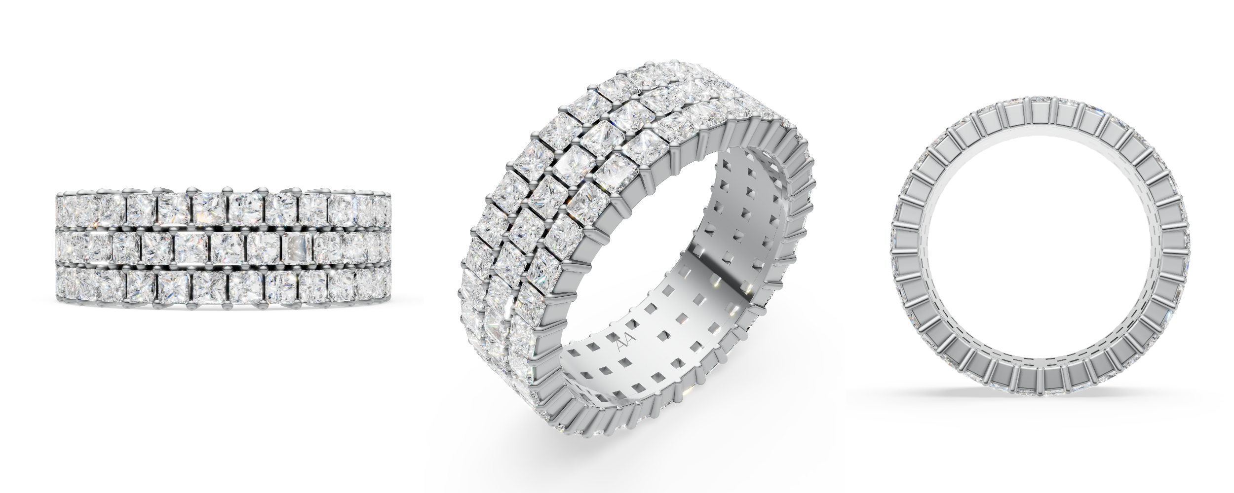 Natural Princess Cut Diamond and Platinum Mens Band. 6.50 TCW