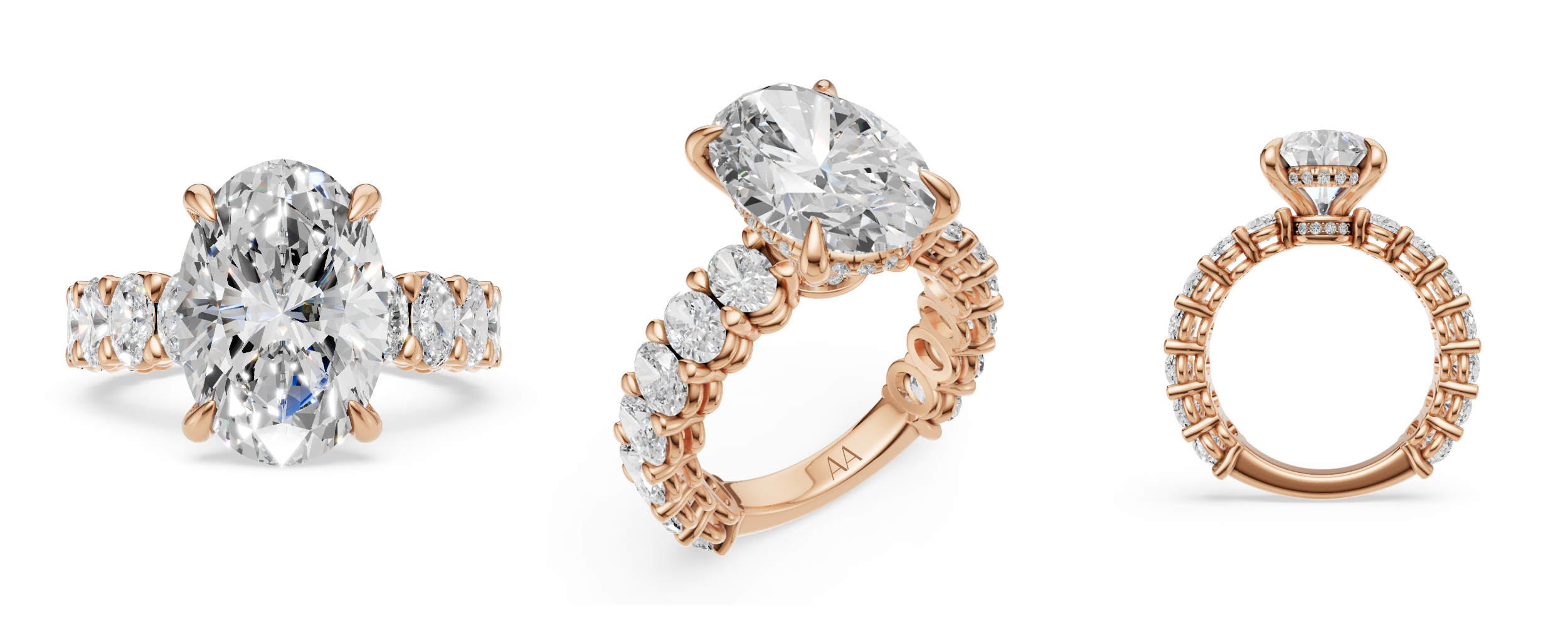 18K Rose Gold 4 Carat Lab Oval Cut Diamond and White Diamond pavé ring.