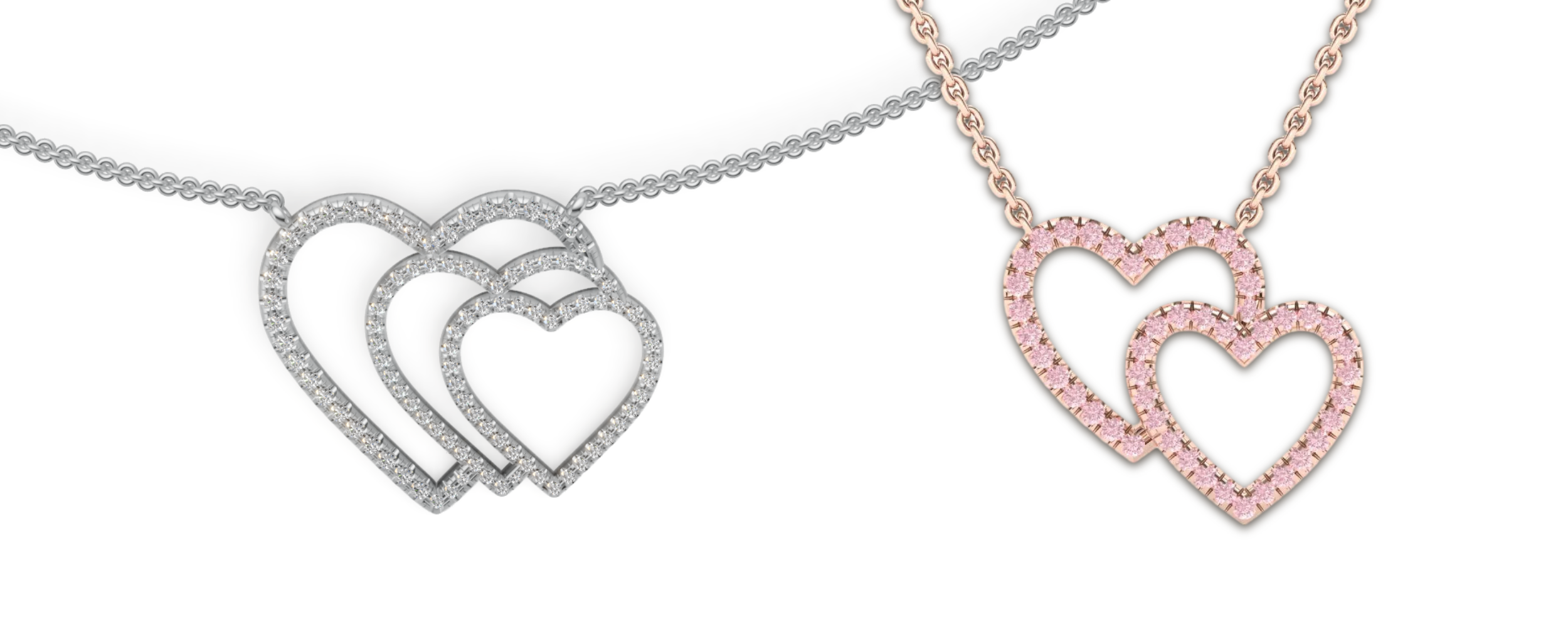 Lab White and Pink Pavé Heart Shape Pendants.