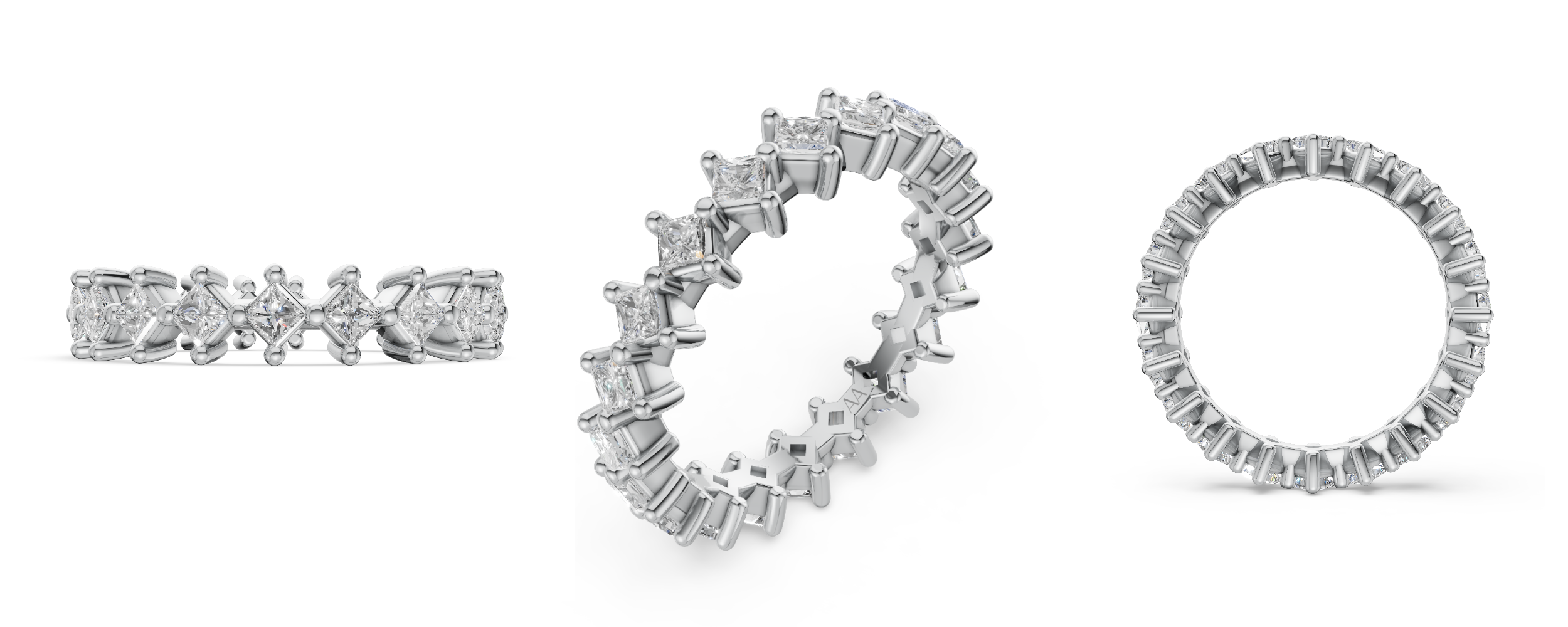 Natural Princess Cut Diamond and Platinum Wedding Band. 1.30 TCW