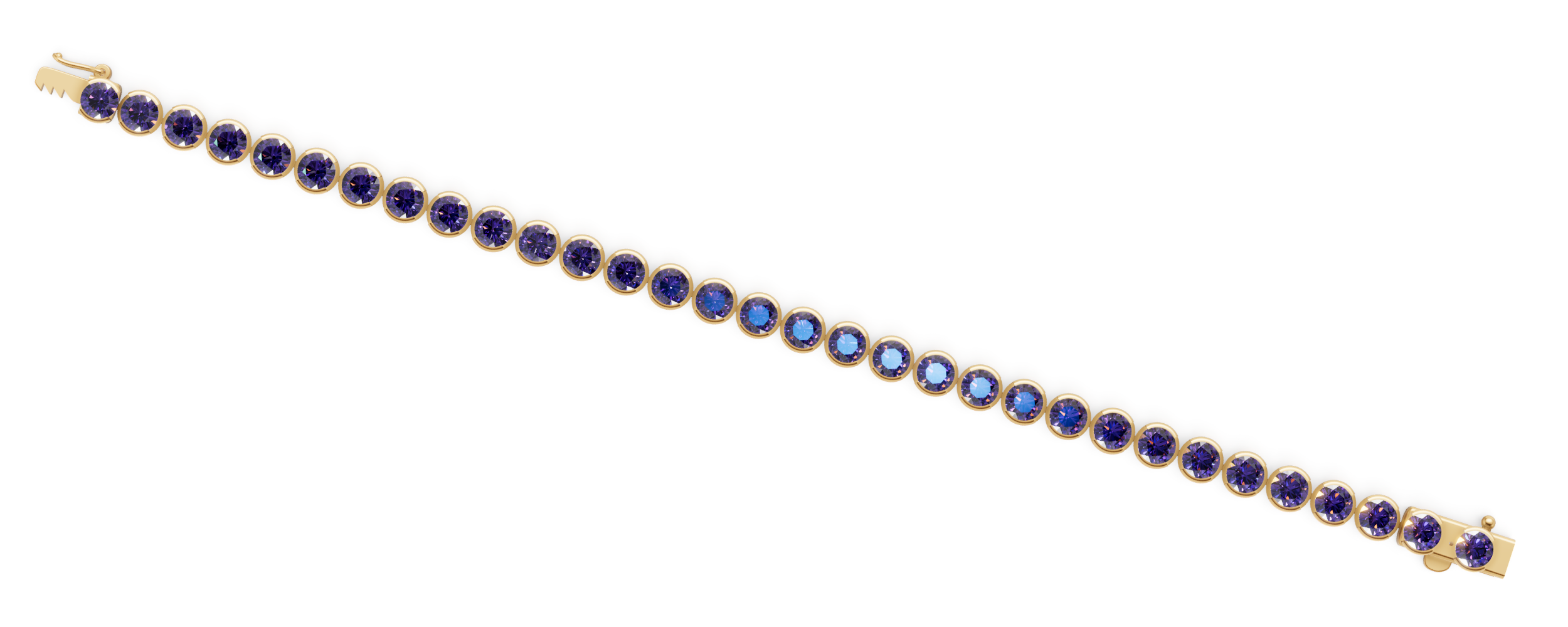 Semi-bezel 18K Yellow Gold and Amethyst Tennis Bracelet. 6mm. 16 TCW