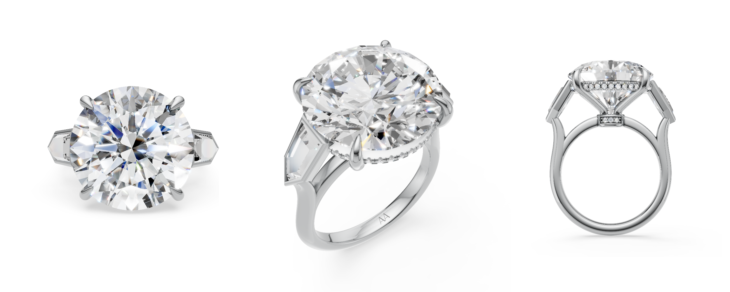 Platinum 8 Carat Lab Round Brilliant Cut Diamond, Bullet Cut side-stones and White Diamond pavé ring.